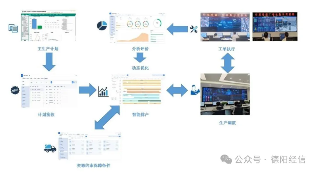 什邡卷烟厂根据主生产计划,以换牌最少、设备改造最少、生产均衡性等因素为排产目标,综合库存、设备能力、牌号优先级等因素,通过算法实现卷包生产计划智能排产,再结合烟丝结存情况,拉动制丝智能排产。