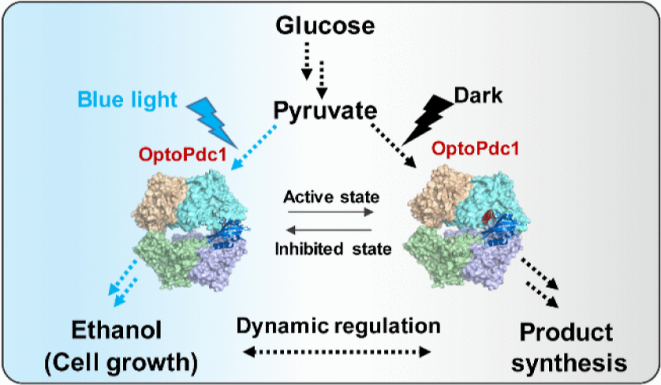1.光控调节酿酒酵母中丙酮酸脱羧酶活性以实现精确可逆的乙醇合成(生物制造·底盘细胞改造)