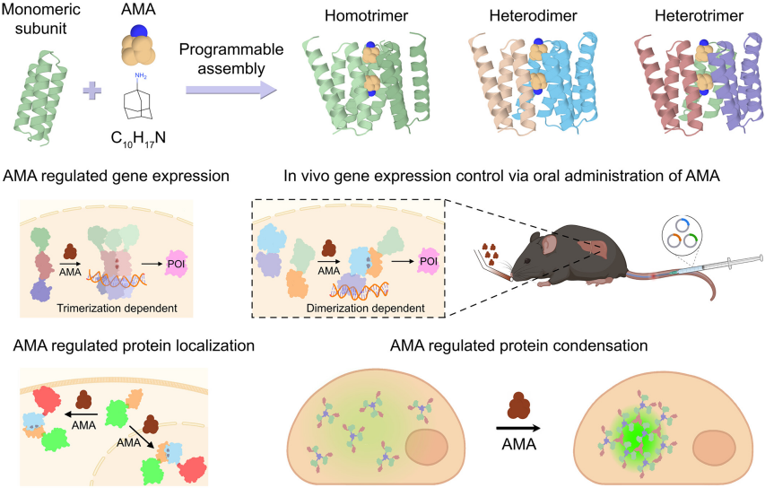 图3. 构建金刚烷胺调控的蛋白寡聚体实现生物过程精准调控示意图