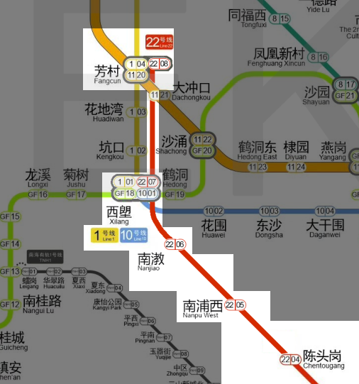 站点设置:共设4座地下站,分别为南浦西站、南漖站、西塱站、芳村站。