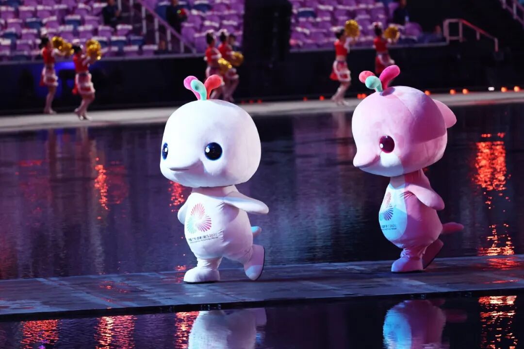 除了火炬设计得像上头柱香一样接地气之外,吉祥物也很有看头。这次以国家一级保护野生动物中华白海豚为原型,分别叫“喜洋洋”和“乐融融”。