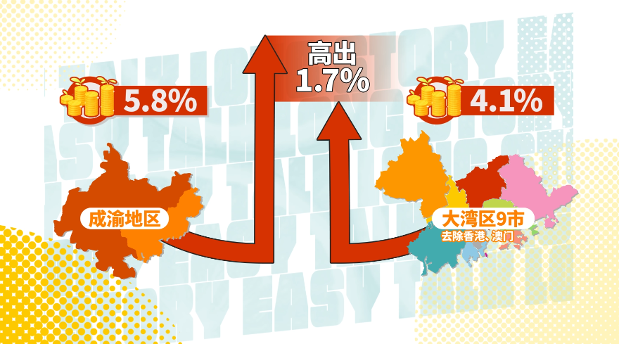 过去三年,大湾区9市的年均GDP增速为4.6%,低于长三角地区的5.1%。2024年上半年,大湾区GDP增速大约是3.6%,不仅低于全国平均水平,与成渝地区双城经济圈5.8%的同比增速相比,也落后了1.7个百分点。
