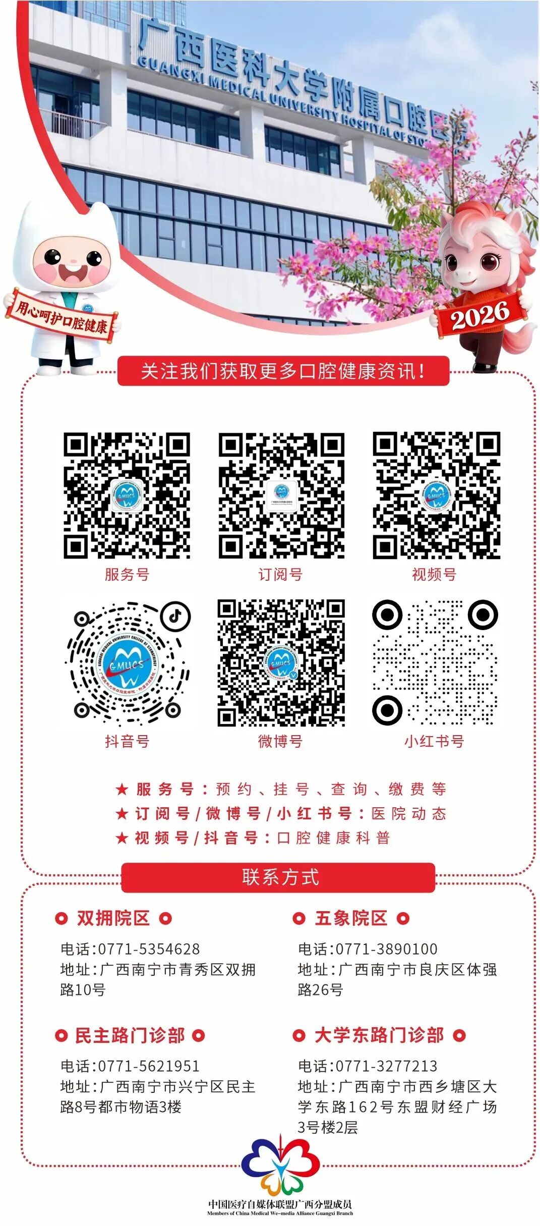 2025,我们一起走过;2026,我们携手前行。新的一年,广西医科大学将锚定建设国内一流、国际著名医科大学的奋斗目标,拿出跃马扬鞭的勇气,激发万马奔腾的活力,保持马不停蹄的干劲,以永不停歇的步伐向新而行、向强进军,用实干续写发展新篇章,用实绩交出奋斗新答卷,让每一位干部职工因为在这里工作而更幸福,让每一名同学因为在这里学习而更幸运,让每一位家人因为你们在这里而更开心、更放心,让每一位校友因为是“医大人”而更骄傲、更自豪,让每一位合作伙伴因为有我们而更如意、更满意。