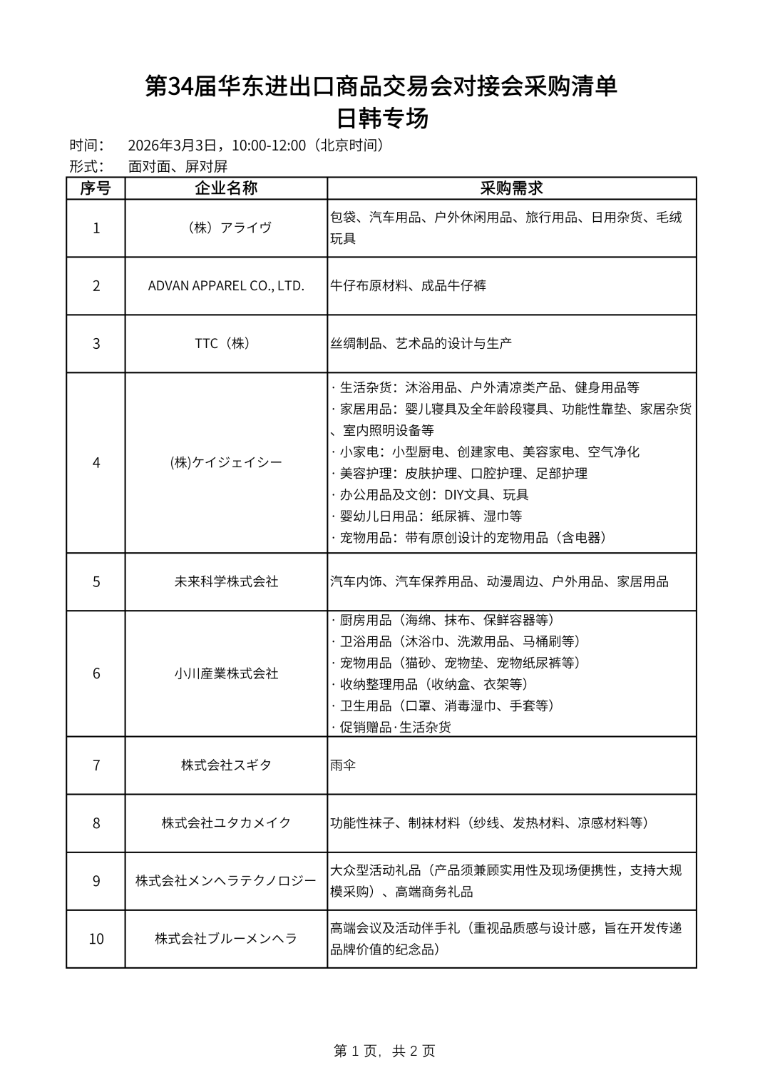 面向参展企业,第34届华交会专门开展“一对一”“面对面”对接会7场(家庭用品专场、服装服饰专场、装饰礼品专场、纺织面料专场、欧美专场、东南亚专场、日韩专场),以更好地服务、提高参展企业的成交效率。