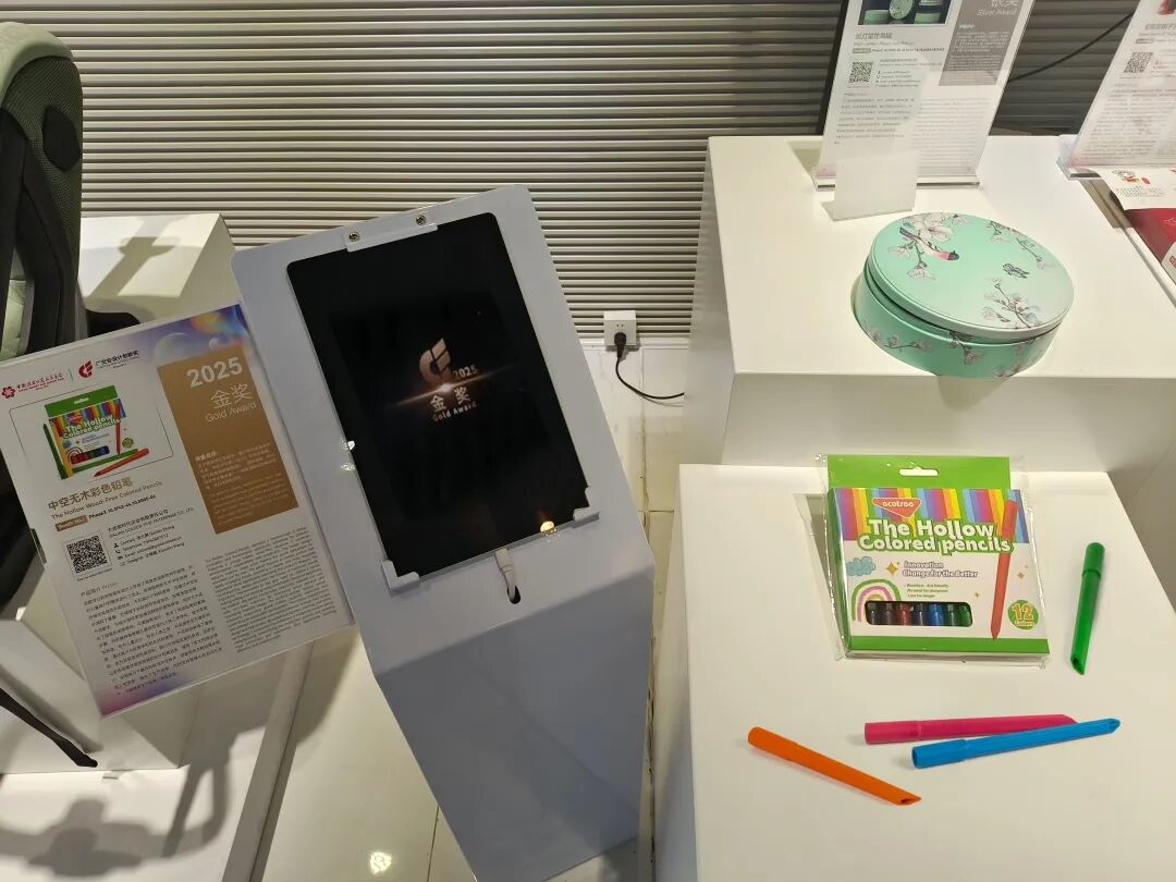 今年广交会上,获奖产品还被邀请进入CF奖专属展厅进行集中展示,我们的中空无木彩色铅笔凭借独特的造型与创新理念,吸引了众多来自欧洲、东南亚、中东及南美等国家和地区的买家驻足观看。不少客户现场试写体验后,对产品的顺滑手感与环保设计赞不绝口,更有多家国际文具品牌与渠道商当场表示合作意向