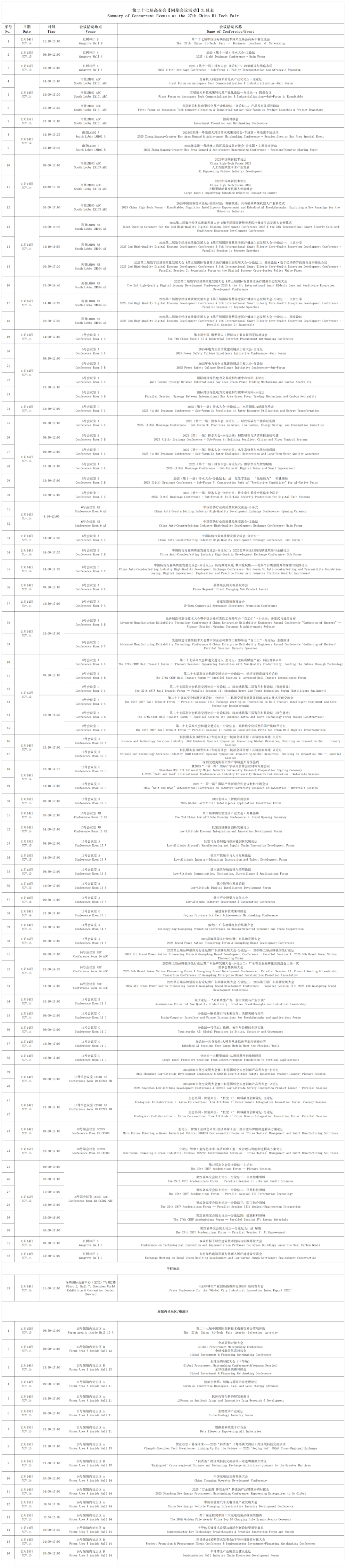 本届高交会设置国之重器、科技巨头产业链展区、国际科技成果、省市科技成果、科研院所高校与国家重点实验室、生物技术、人工智能、智能制造、机器人产业链、半导体与集成电路、3E亚洲消费电子、低空经济产业、光储充、电池、储能、电力新能源、跨境电商与汽车电子、新能源、市政工程、智慧港口、水务与环境、C³未来建筑大会等多个展区。