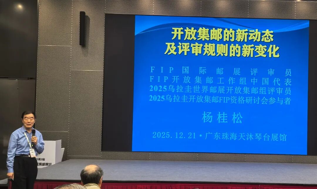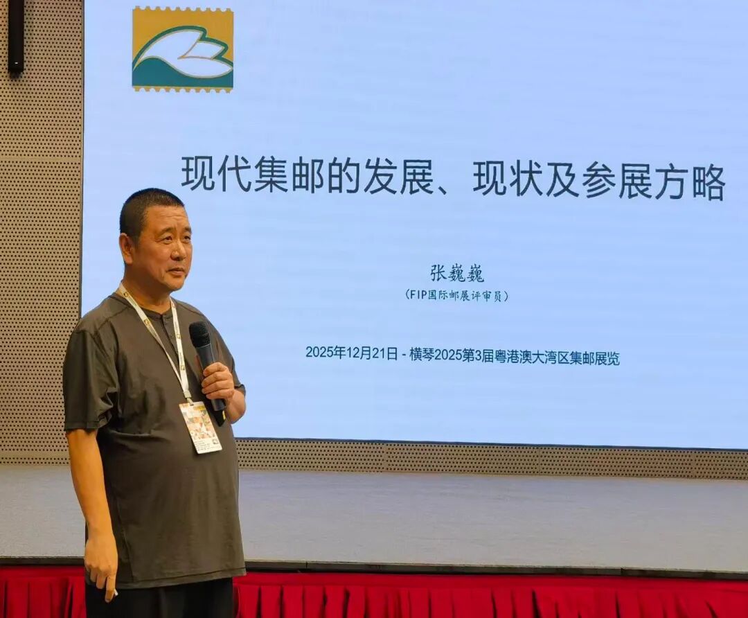 倪郁烈(全国集邮联学术委员会副主任、国家级邮展评审员,瓯越邮政用品研究会会长,浙江邮史研究会理事。)《重庆邮政的发展(1897-1945) 》 。邮政历史类。刘一锋(国家级邮展见习评审员,浙江邮史研究会副会长。)《美国黑色自由女神像邮资片(1875-1881) 》。邮政用品类。《1997中国邮政贺年(有奖)明信片》 。邮政用品类。《人民币时期华东解放区信函邮资(1949.6.1-1950.8.15)》。邮政历史类。李少可先生(全国集邮联合会会士、全国集邮联邮展委员会副主任、国家级邮展评审员,浙江邮史研究会理事。)主持集邮讲座。张巍巍先生(全国集邮联合会会士、FIP国际邮展评审员)主讲: 现代集邮的发展、现状及参展方略。杨桂松先生(全国集邮联合会会士、FIP国际邮展评审员、FIP开放集邮工作组中国代表)主讲: 开放集邮的新动态及评审规则的新变化。方寸筑同心,邮展谱华章,祝横琴2025年第3届粤港澳大湾区集邮展览圆满成功!从钱塘潮涌到湾区浪起,邮情跨越山海。祝浙江邮史研究会以史为鉴、以邮载道,再创佳绩!欢迎关注新光邮票会·浙江邮史研究会公众号: ZJ浙江。您也可以搜索微信号: A13185043659。或者直接点击文章最上方蓝色字体“ZJ浙江”,就可以收到更多精彩邮文。入会联系: 林智灵(微信号: 136 0687 9268)