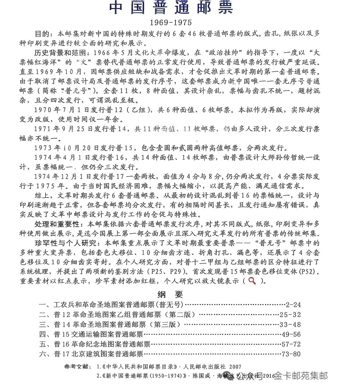 《中国普通邮票(1969—1975) 》。传统集邮类。