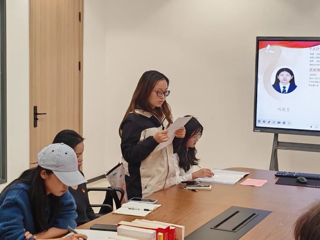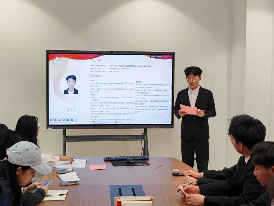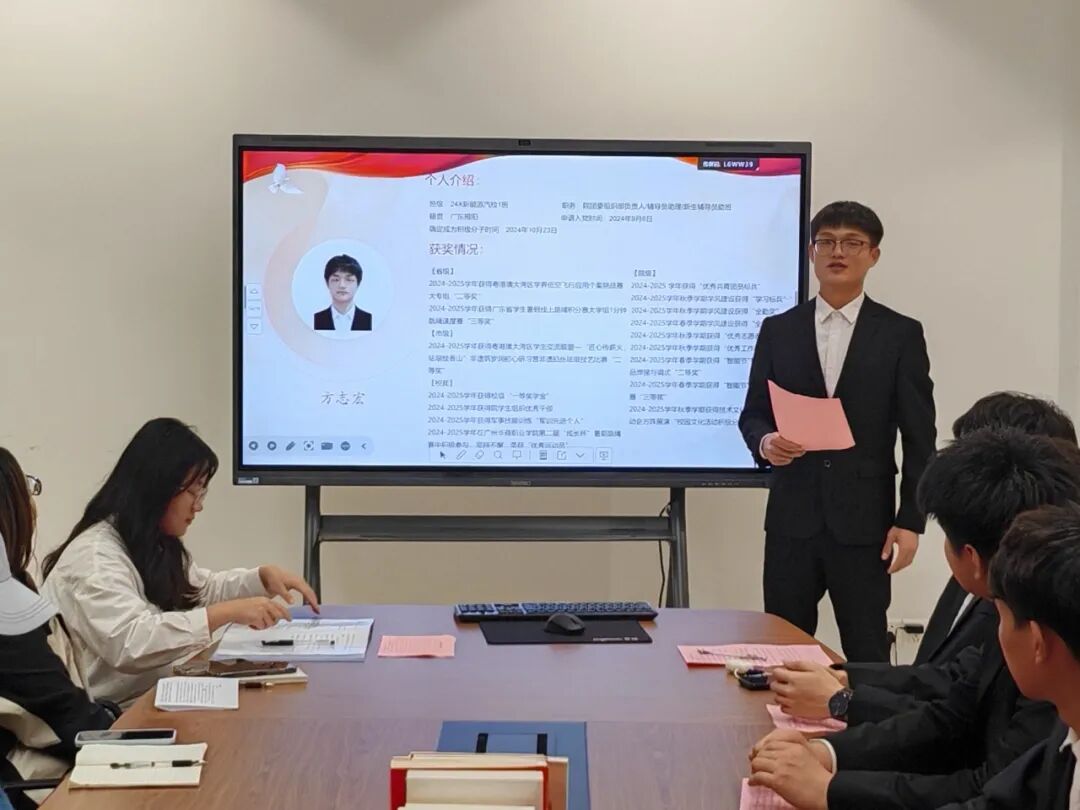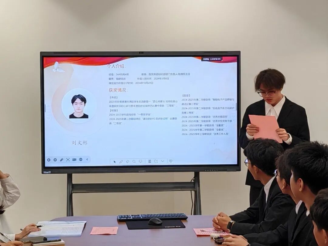 随后,黄开和、梁英淳、邹毅韬、刘海潮、刘文彬、刘晓雪、方志宏、邱文浩、罗俊峰九位发展对象依次发言,分别就个人的政治思想、学业生活以及工作态度进行了详尽的汇报,并坚定地表达了自己加入党组织的决心。他们正式向党组织提出了由发展对象转为预备党员的申请。