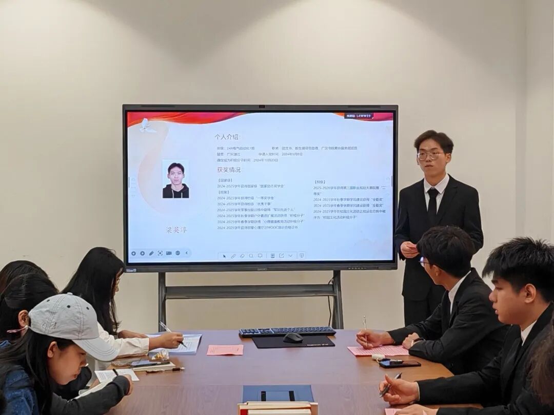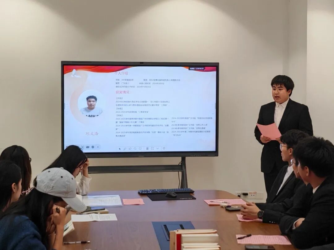 为了进一步加强党组织的向心力与战斗力,充实党员后备力量,努力打造一支理想信念坚定、能力素质过硬、纪律作风优良的先进队伍,智能制造与汽车技术学院学生第三党支部于2025年12月8日在广汉书院知行轩召开2025年秋季发展对象转预备党员通表大会。会议由智能制造与汽车技术学院学生第三党支部书记陈雅静主持。