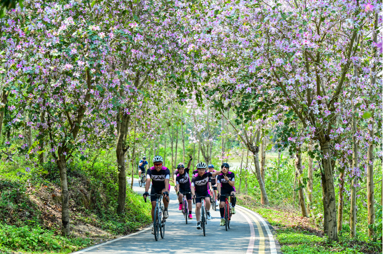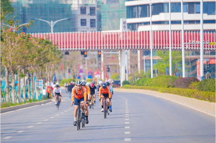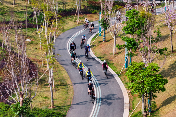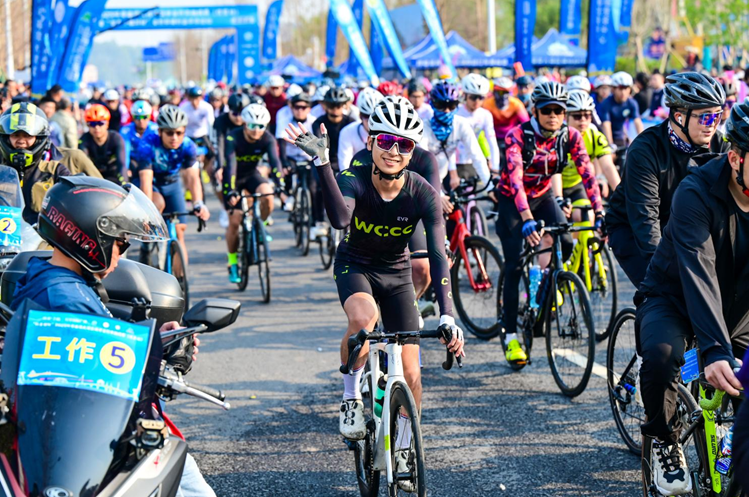 随着发令枪响,骑友们轻快蹬动踏板,向着101公里的赛道轻松启程。据悉,此次自行车挑战赛不计时、不排名,俨然一场悠然惬意的骑游活动。