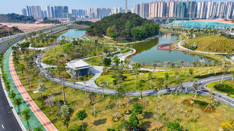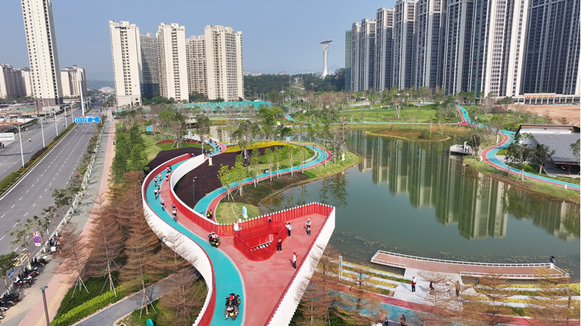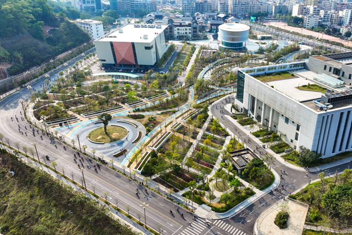 骑友们从信宜市体育公园出发,沿途经过的梅岗公园-流云阁-华南师范大学附属信宜学校-中轴广场-山水公园等地,一个高标准规划建设的县城新空间——玉都新区轮廓清晰可见。