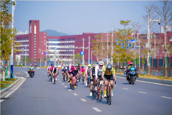 沿着赛道前行,锦江画廊碧道、十里稻田更是将信宜的山水田园之美展现得淋漓尽致。翠绿的稻田与澄澈的碧空相接,选手们穿梭其中,仿佛骑行在画境里。