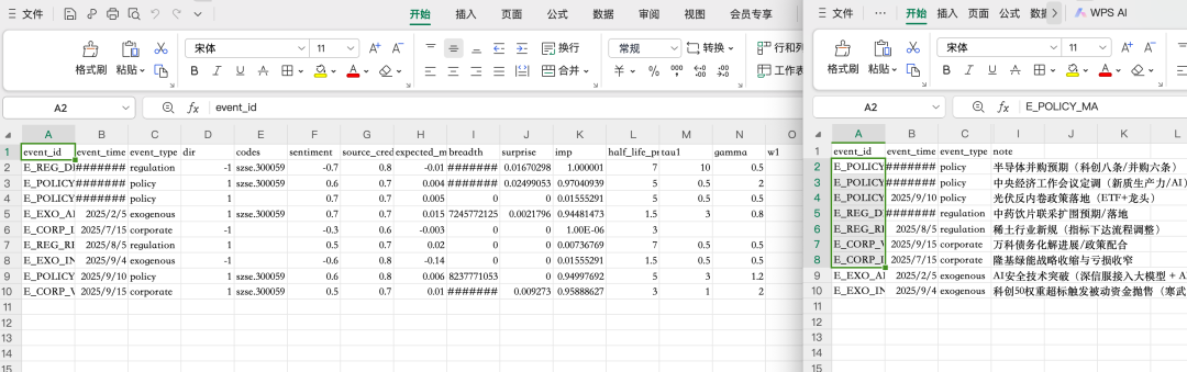 event_type | 事件类别 | str | 取值:policy / regulation / corporate / exogenous |