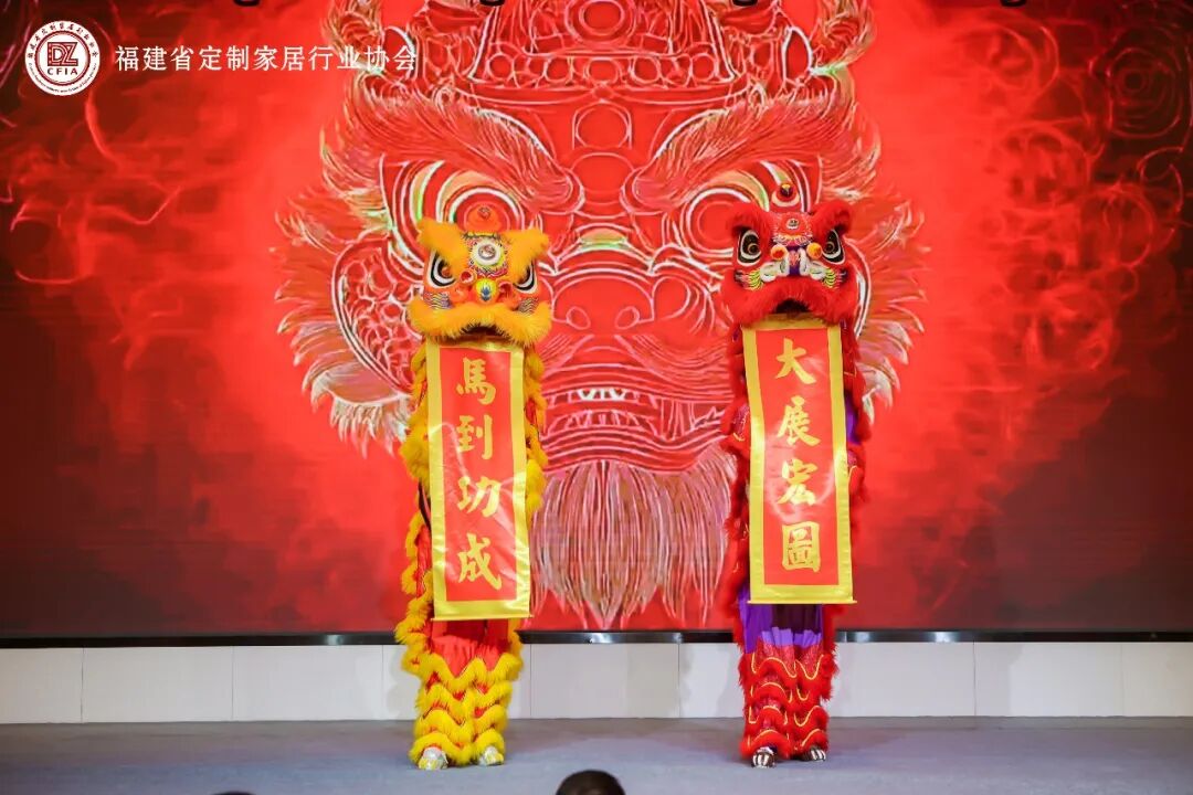 夜幕降临,“闽潮之夜”颁奖盛典在激昂的舞狮表演中拉开帷幕。雄狮起舞,绕场互动,寓意闽派定制家居产业如雄狮奋起,迈向智造未来。