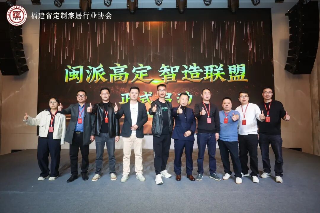 现场,闽派高定智造联盟正式成立福建省汇森宝整体家居有限公司厦门顾信家居有限公司福建巨亚家具制造有限公司福建冠爵家居有限公司福州市兴大地木业有限公司福建然一木业有限公司泉州工振家具有限公司福建博雀科技有限公司厦门市瀚艺诚工贸有限公司福州若然家居有限公司、福建拓凯建材有限公司11家企业成为联盟首批成员。联盟发起单位代表共同宣读倡议书,以“标准共建、设计驱动、智造赋能、资源共享、文化自信”五大共识,开启闽派高定协同发展的新篇章。