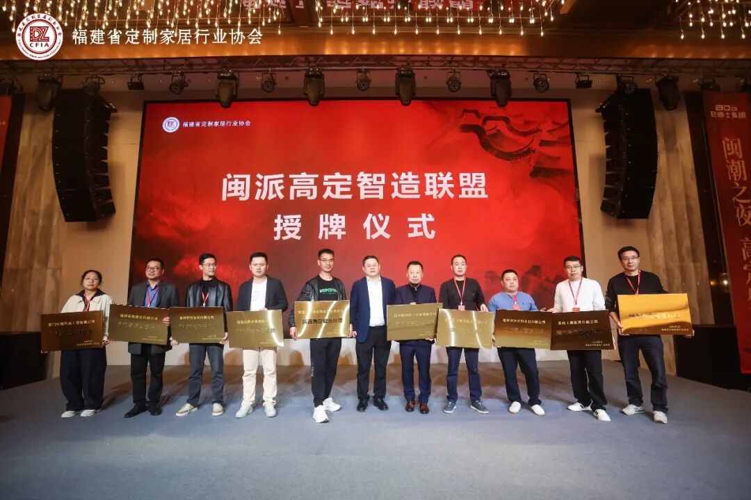 联盟成立仪式后,世界绿色设计组织绿色生活方式委员会主席、中国高定俱乐部和高定设计周创始人 张传喜先生为首批联盟成员代表授牌。愿联盟成员携手同行,共创闽派高定新篇章,同时也欢迎更多优秀企业加入联盟,共同为福建定制家居产业的高质量发展贡献力量。