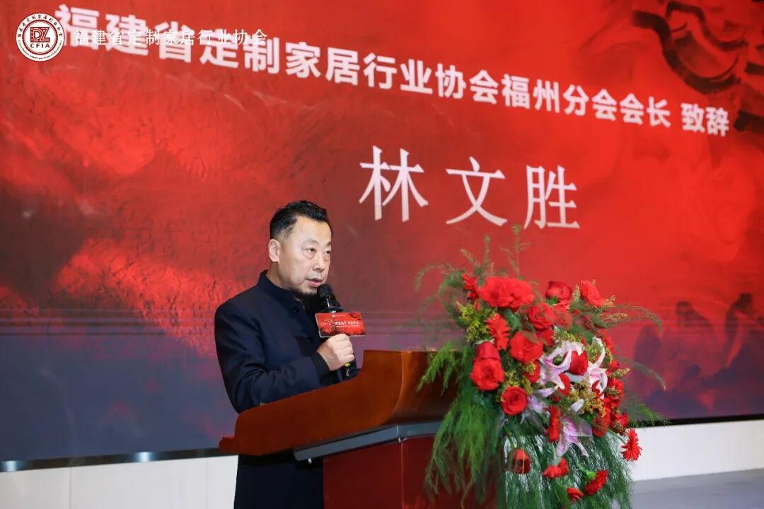 福建省定制家居行业协会福州分会会长 林文胜先生发表致辞,回顾过去一年的行业坚守与突破,展望新一年的发展方向,号召全体同仁聚力共赢,共同推动福州定制家居产业高质量发展。站在新的起点上,希望以此次峰会为契机,携手共进,做强闽派高定,共创智造未来。