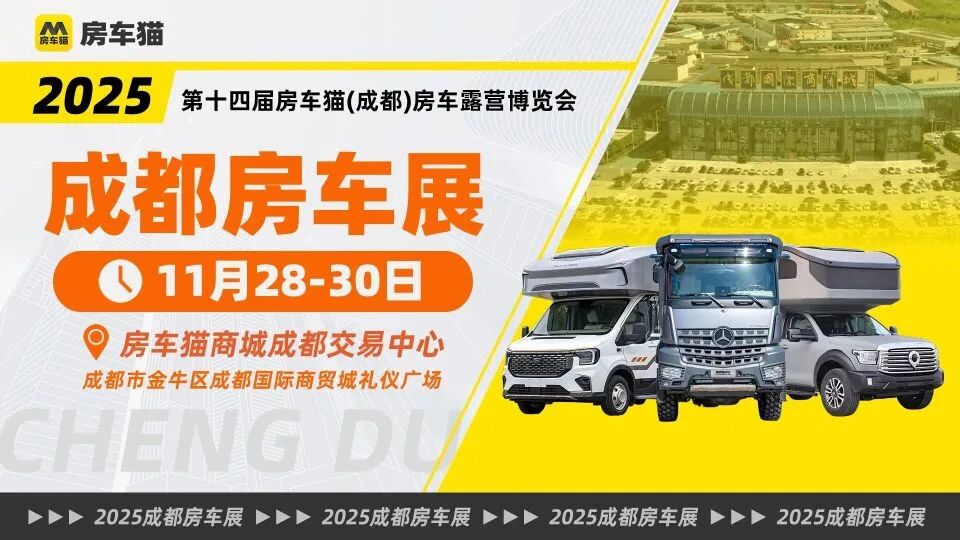 作为西南地区年度房车盛会的收官之作,2025成都房车展将于11月28日至30日在成都国际商贸城·房车猫商城盛大启幕。本届展会以“年末清仓·底价狂欢”为主题,汇聚全国百余家主流房车品牌,推出“厂商直降、限时特惠、购车赠礼”等重磅福利,为消费者打造一场年终购车盛宴。