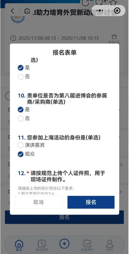 (2)点击报名,按照要求填写报名信息。