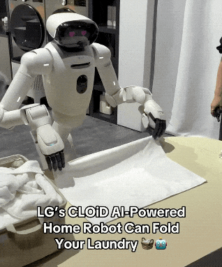 好消息:机器人真的会叠衣服了。LG 在 CES 2026 上推出了一个叫 CLOiD 的机器人,它在现场很自信地演示了叠衣服。