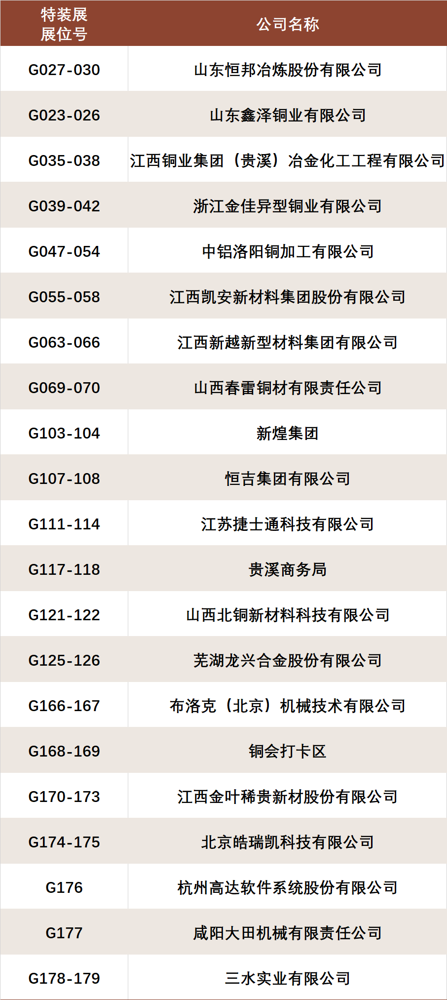 展位名单一览