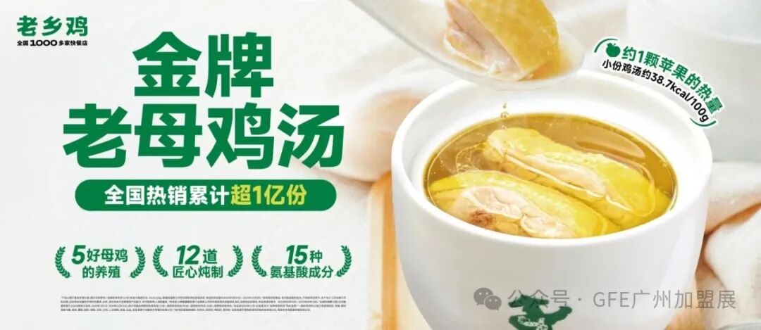 老乡鸡,是以中式快餐为特色的连锁餐饮品牌,在全国有1000多家快餐店,目前一年服务顾客超1亿人次。老乡鸡从养鸡起家,实现了从养殖到餐桌的全产业链模式。目前,在北京、上海、深圳、杭州等一线城市都有门店,且每年门店数量都在快速增长。鸡类菜品是老乡鸡的招牌,其中以鸡汤为代表,选用养足180天的肥西老母鸡,再以农夫山泉水现炖,这碗汤全国热销累计超1亿份,深受全国食客的喜爱。