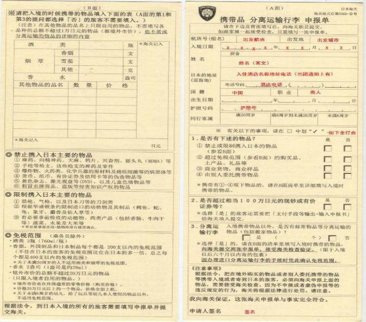 飞机上需要填写“入境纪录卡”和“携带行李申报单” ,请提前准备好酒店名称地址电话相关信息