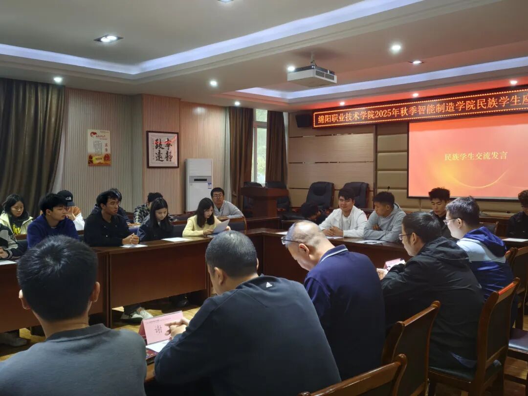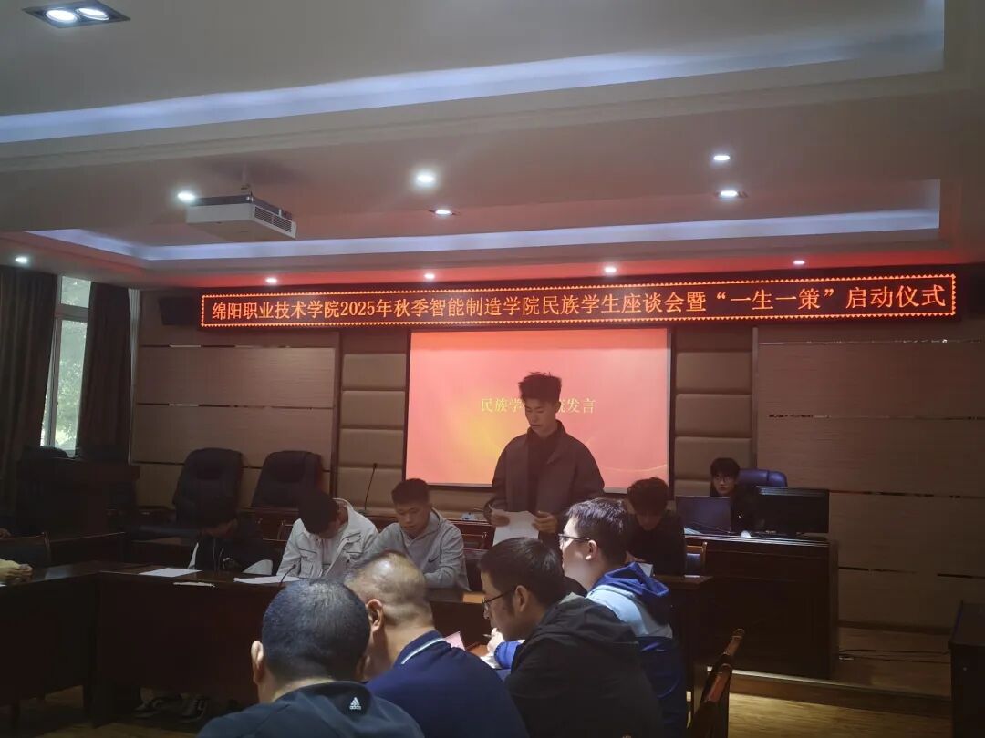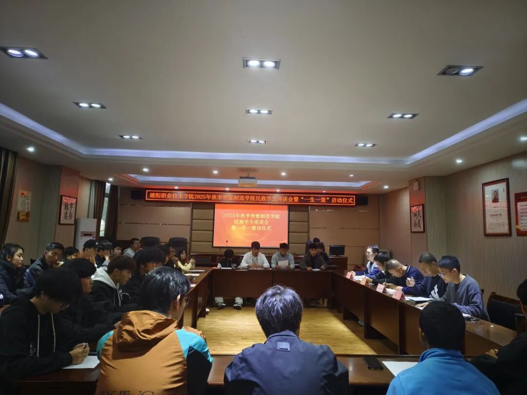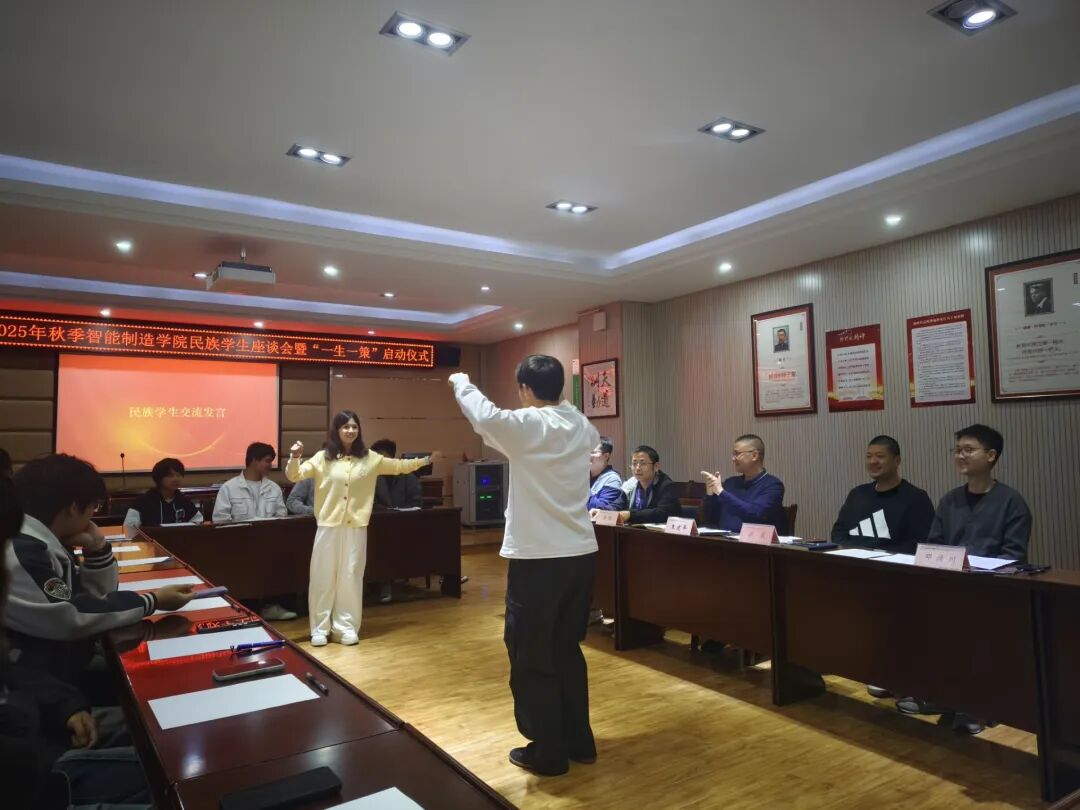 2025年10月24日上午10时,智能制造学院在机电大楼210会议室召开民族学生座谈会暨“一生一策”启动仪式。学院党总支书记、院长王建平,副院长谢晨,学生干事潘峰,心理干事毛鹏枭和全体民族学生参会,团总支书记邓靖川主持会议。