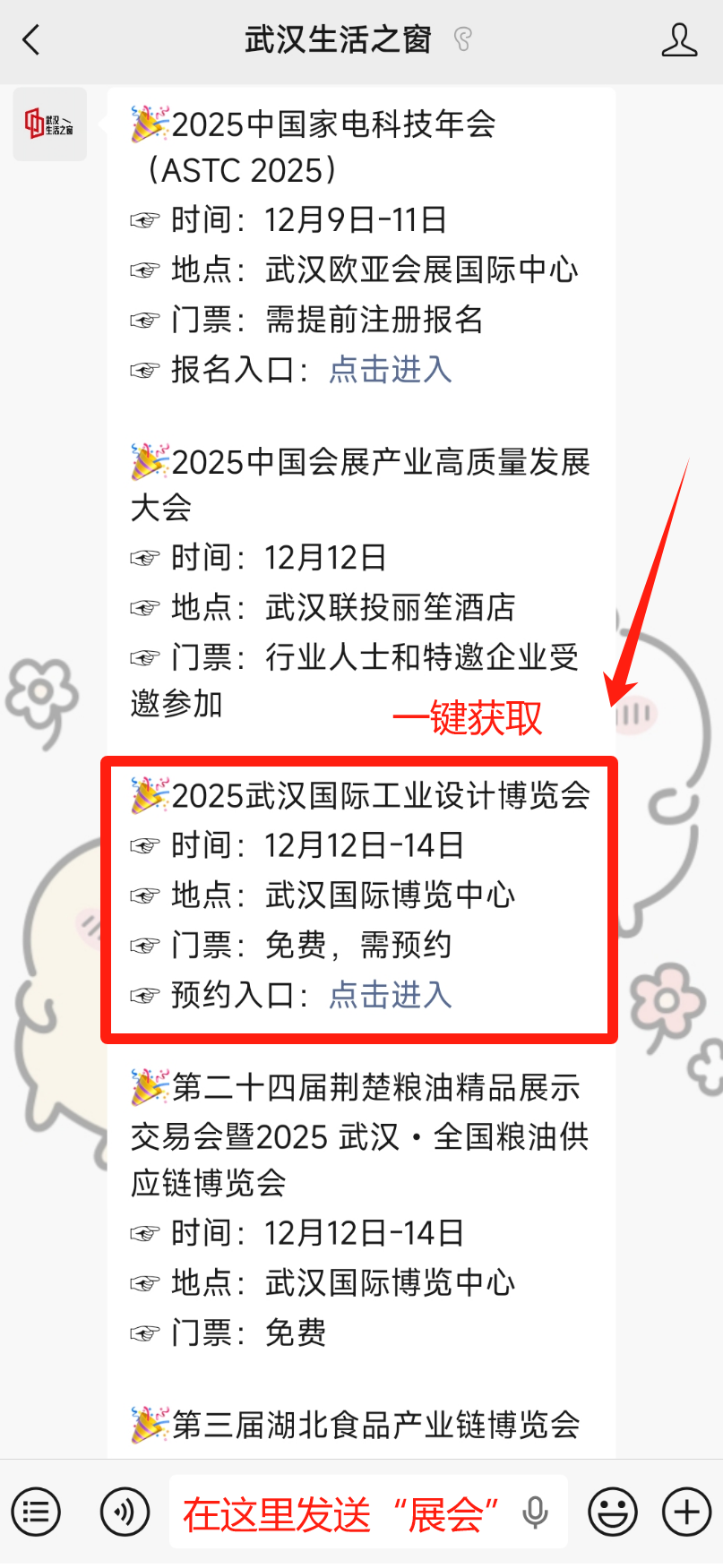 🔍预约入口:您可关注武汉生活之窗微信公众号,在聊天对话框发送“展会”获取2025武汉国际工业设计博览会免费预约入口~
