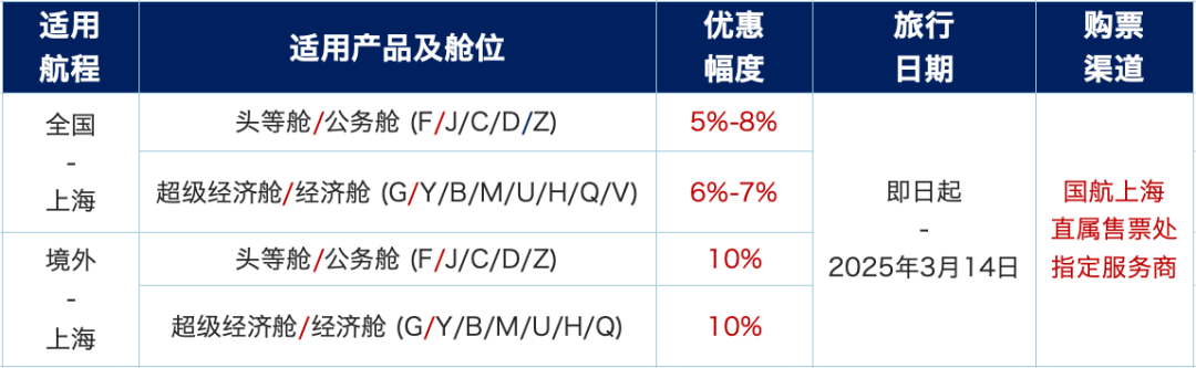 国航竭诚为参会人员提供优惠机票及专属柜台服务、虹桥泊悦快速安检通道等优质服务,适用对象包括大会参与人、访问者、受邀嘉宾、合作伙伴员工及其同行者。中国外贸新春第一展--第33届华东进出口商品交易会(华交会)即将于2025年3月1日至4日在上海新国际博览中心举行!国航竭诚为参会人员提供优惠机票及专属柜台服务、虹桥泊悦快速安检通道等优质服务,适用对象包括大会参与人、访问者、受邀嘉宾、合作伙伴员工及其同行者。