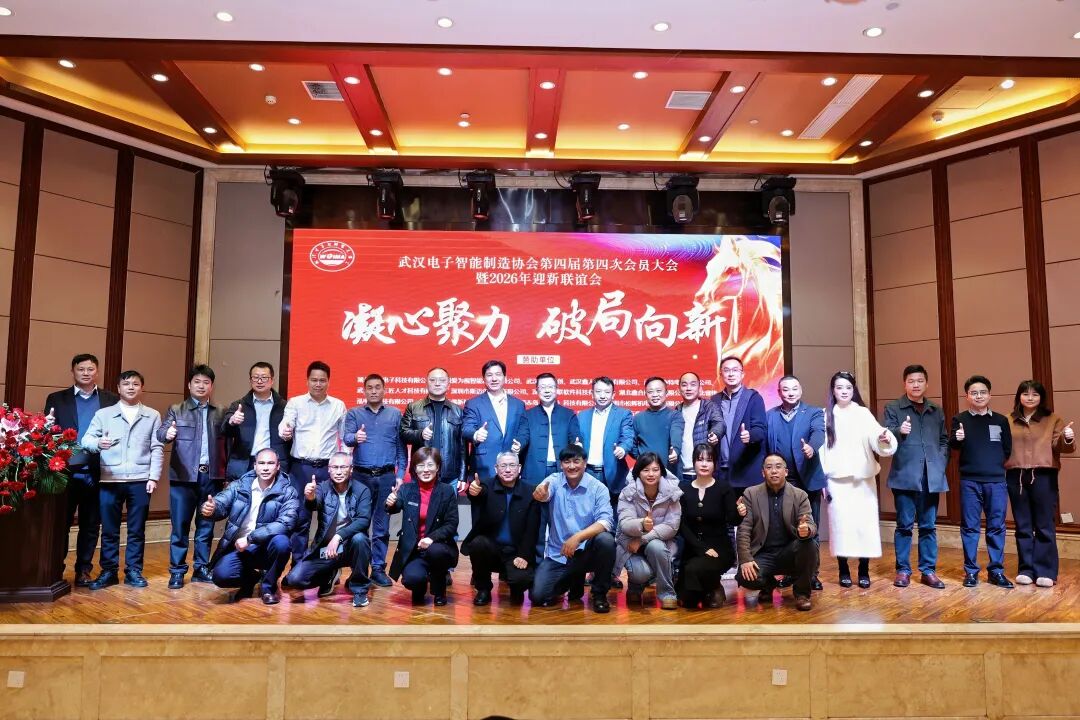 近日,武汉电子智能制造协会第四届第四次会员大会暨2026年迎新联谊会成功举!作为协会理事单位,易联软件受邀参会,与行业同仁、专家学者齐聚一堂,共话电子制造行业发展新机遇,共谋智能化转型新路径。