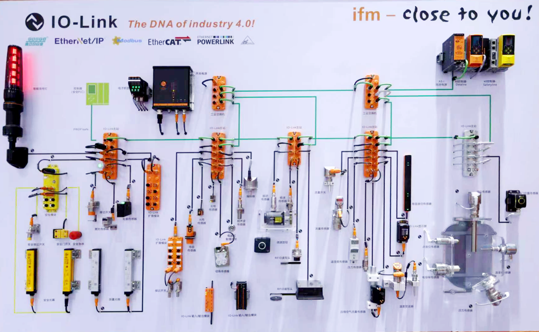 ifm 90% 以上的传感器都带有IO-Link 功能,通过 ifm 的 IO-Link 技术及其Y形链路,可将传感器采集数据传送到 PLC或直接与 SCADA,MES,ERP, CMMS 系统对话,从而实现智能传感,状态监控,安全保护,能效评估优化等功能。