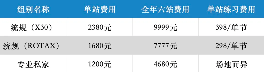 个人统规(X30 / ROTAX)报名费包含车辆、油料、轮胎等费用。不包含装备使用费、保险费。
