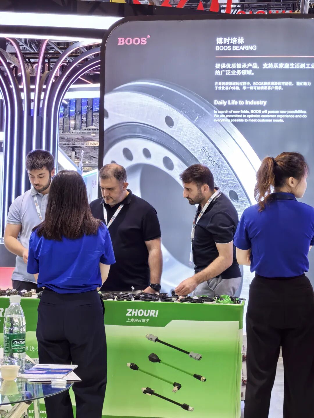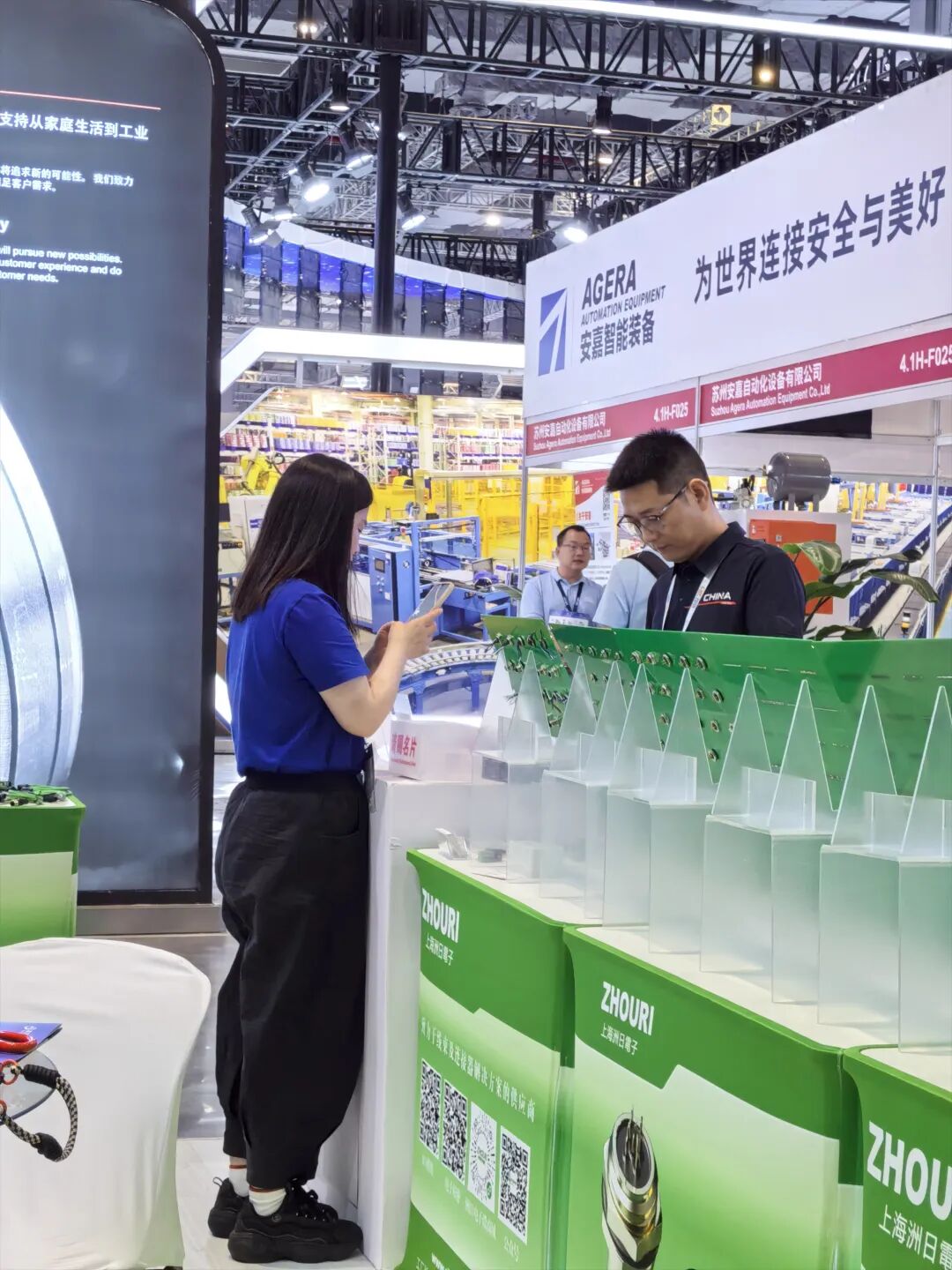 向参展客商介绍产品