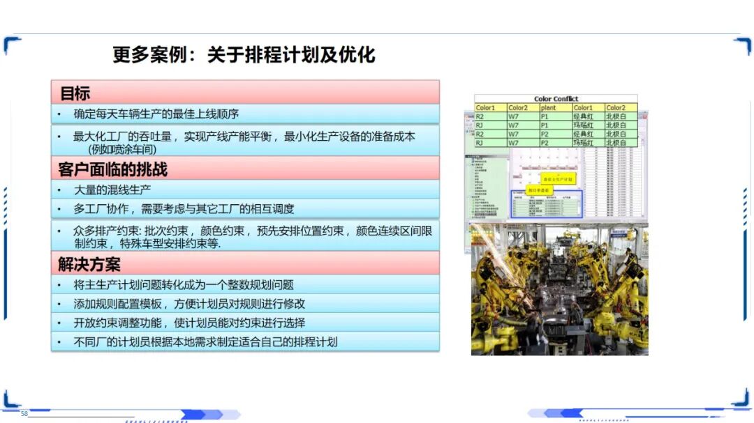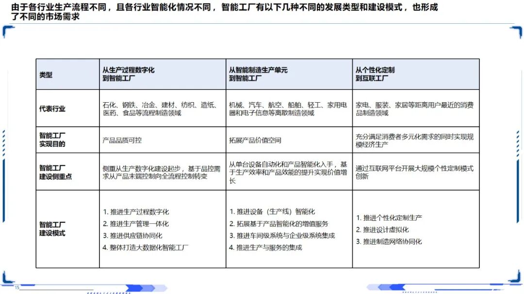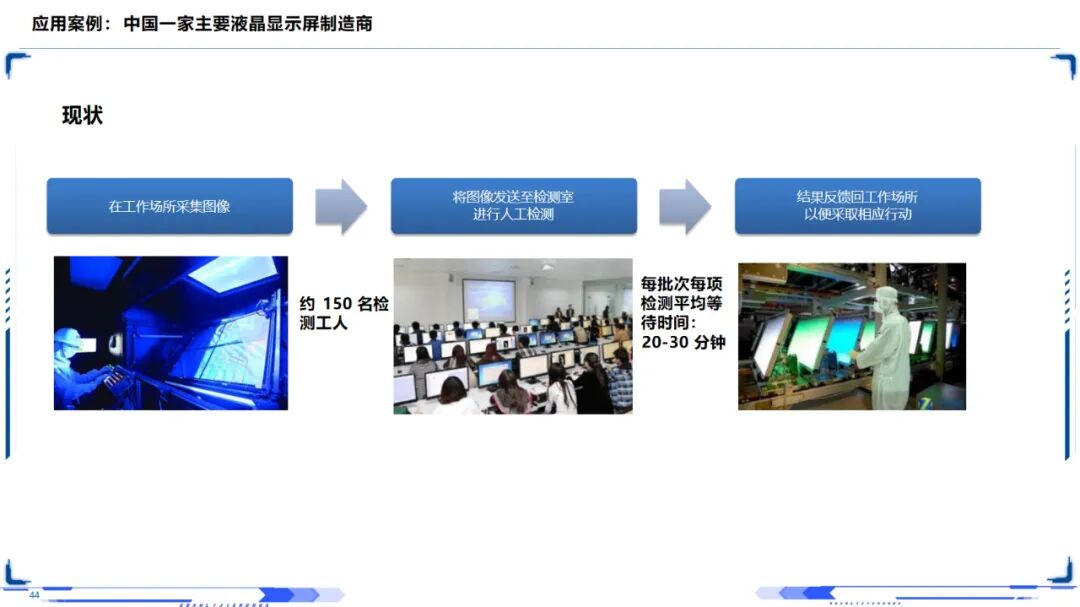 智能制造技术的应用领域非常广泛,包括离散型智能制造、流程型智能制造、网络化协同制造、大规模定制制造、远程操作与维护服务等。流程制造业以生产数字化和全流程质量控制为重点,离散型制造业以装备自动化和系统集成为重点,消费品制造业以个性化定制和网络协同为重点,不同的产业适合不同的建设模式。国内某 LCD生产厂商使用该系统,产品质量检验精度达到95.29%,每年节约成本约150多万元,成为业界应用的标杆。