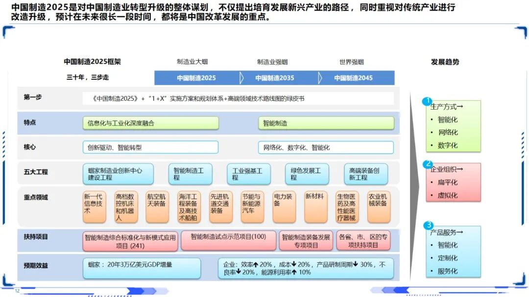 2025智能制造是落实《中国制造2025》战略的关键一步,以“数字化、网络化、智能化”为核心,在推动传统产业转型升级的同时,重点培育新兴产业,已经成为未来制造业发展的主要方向。