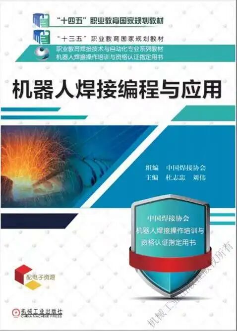 本公众号推荐的“理实一体化职业技能等级培训教材”《机器人焊接编程与应用》由中国焊接协会机器人焊接厦门培训基地杜志忠、刘伟主编,郭广磊、林贵川(中国电建)、李波(中国焊接协会)参编,机械工业出版社2019年5月出版,ISBN:978-7-111-62278-9。该教材于2020年11月入选职业教育“十三五”国家规划教材;2023年6月,入选“十四五”职业教育国家规划教材;2024年5月,获评福建省职业教育“十四五”省级规划教材;2025年11月评选为第二届全国教材建设奖(国家优秀教材奖),位列职业教育二等奖名单第82位。教材封面如图所示。