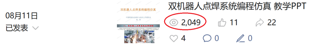 机器人焊接教程微信公众号至2025年4月30日止,管理后台给出的播放量累计已达到10万次。截至2025年12月底,预估播放量已达30万次。