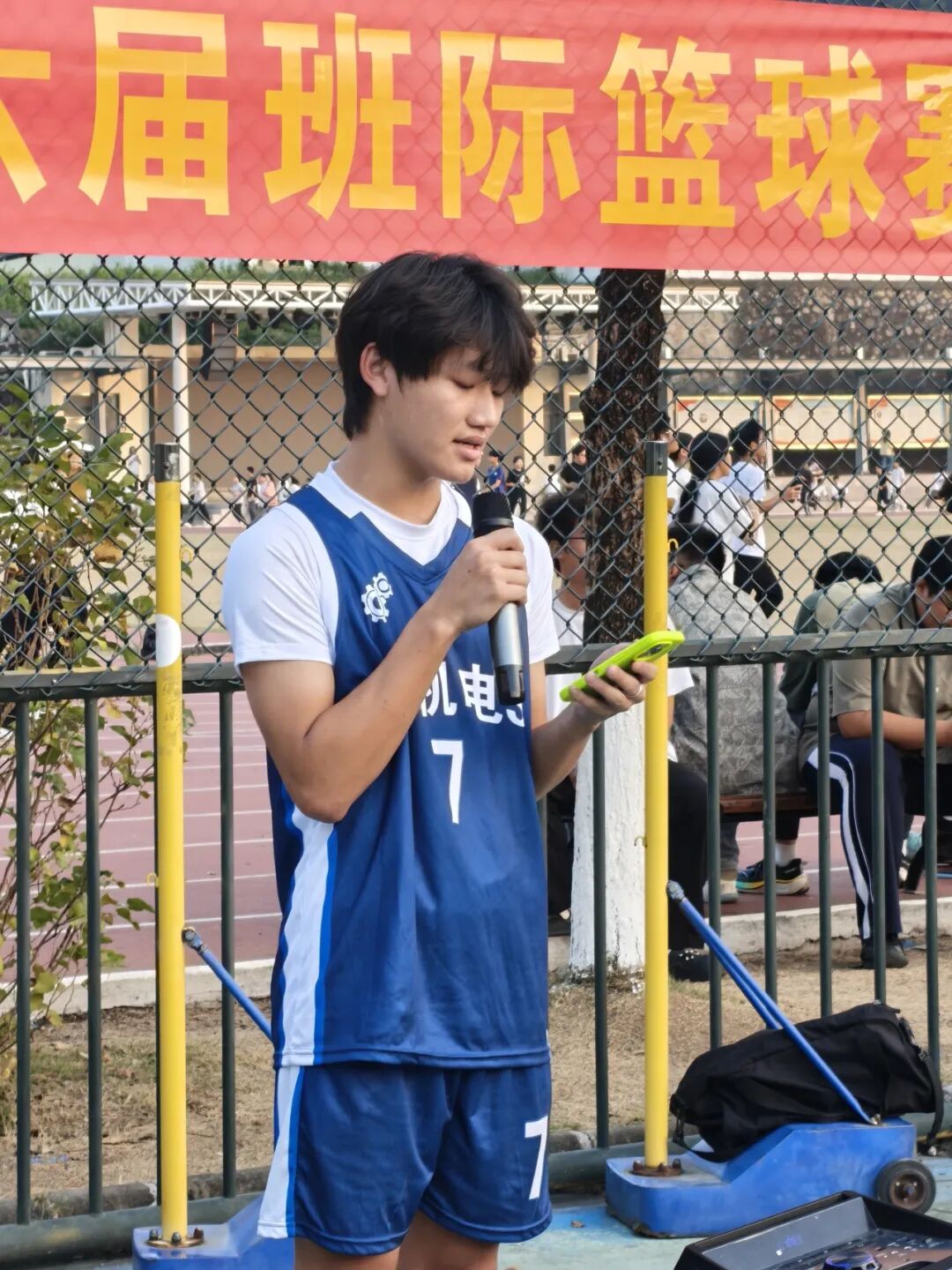 在热烈的气氛中,主持人登台,为开幕式拉开了庄严的序幕。“本次班际篮球赛,不仅是为同学们搭建展示自我、切磋技艺的平台,更承载着丰富课余生活、增强体魄、锤炼意志的初心。”