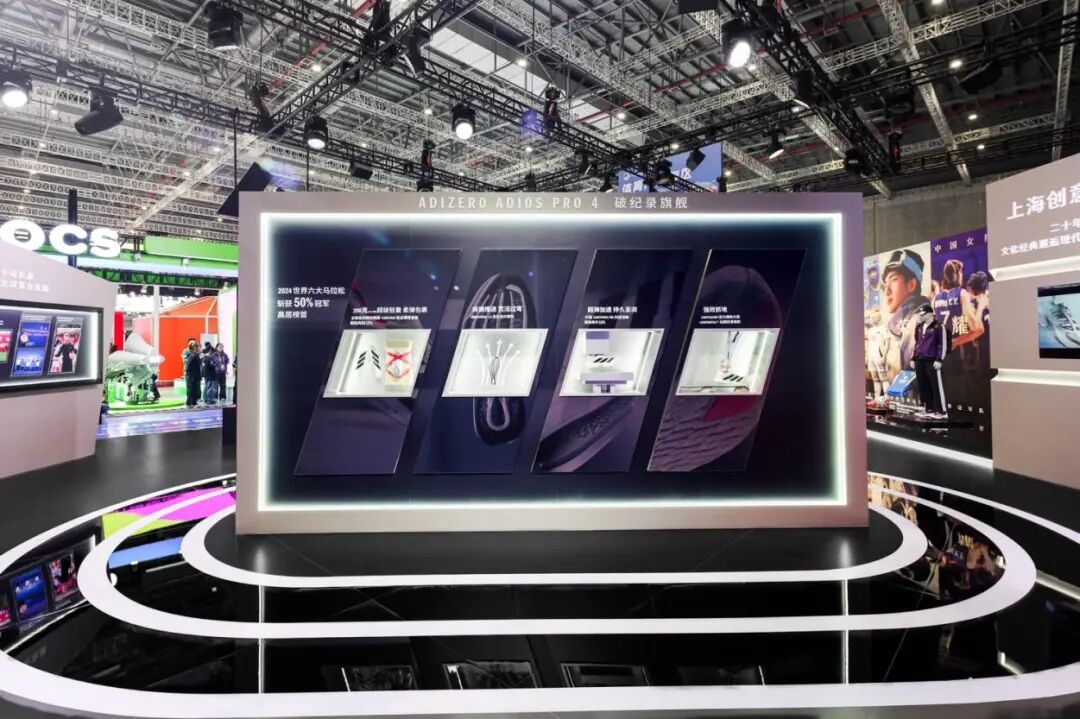 拥有76年历史的阿迪达斯,在本届进博会上聚焦跑步运动,专门设立了“可感知”的科技创新展区,在“0”形赛道上,观众可近距离观察ADIZERO 0系列跑鞋所采用的全新纵向弹性鞋面、LIGHTLOCK贴合锁定系统、ENERGYRODS 2.0仿生劲爪碳柱和LIGHTSTRIKE PRO闪击泡棉等科技创新,直观感受全球顶尖竞速科技及美学魅力。