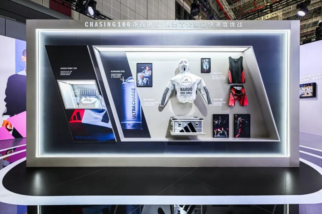 该展区的最大亮点,是首次在进博会亮相的阿迪达斯最新竞速创新成果——ADIZERO PRIME X EVO。该跑鞋是阿迪达斯专为突破人类耐力极限研发的定制装备,采用超厚中底设计,搭配生物力学支撑结构,以最大化跑步经济性,助跑者突破个人最佳成绩。