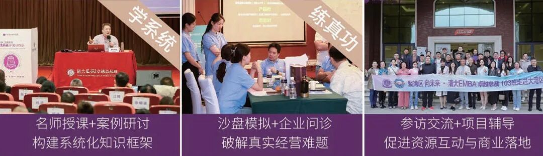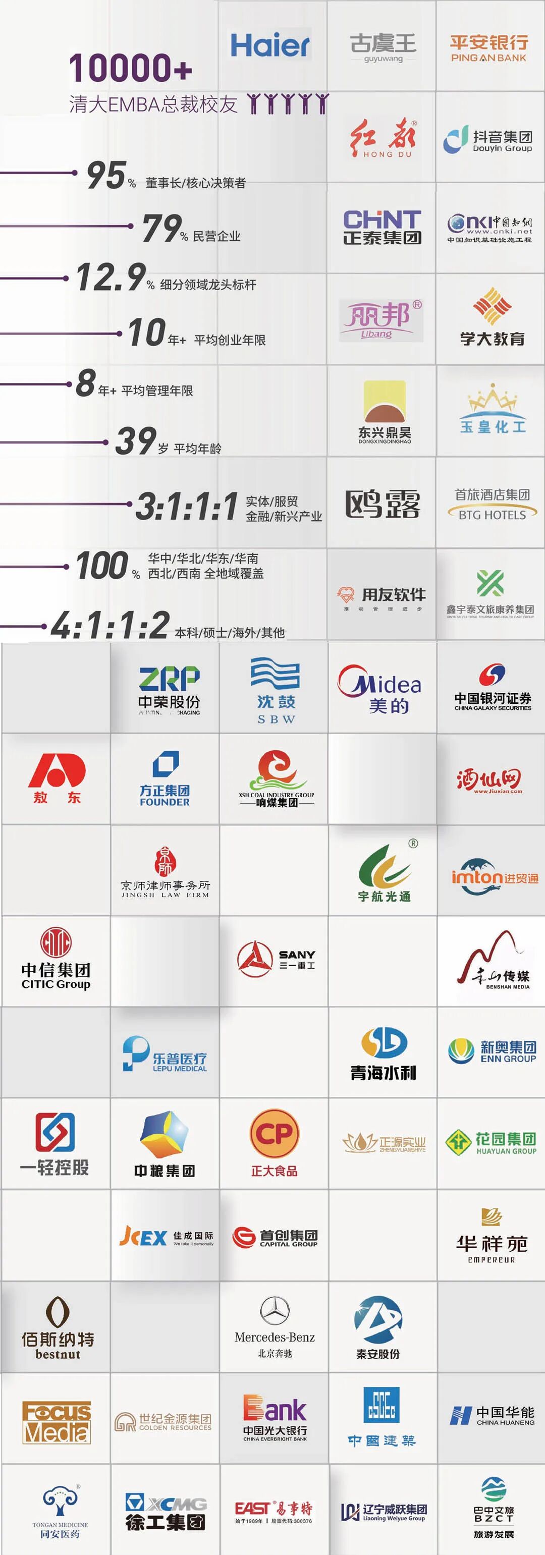 清大EMBA工商管理卓越总裁项目,创始于2006年,是中国最高等学府工商管理EMBA研修系统的标杆课程,是清大EMBA研究院最经典、最久远的旗舰型项目。20年,八次迭代升级,陪伴和成就10000+企业家、高级管理者的成长、成熟与成功。基于对5000+企业深度调研与实践赋能,独创“道天地将法·卓越十五力”课程体系,以东方管理哲学为魂,融合西方管理科学之器,以“做久、做对、做大、做强、做成”为内核,打造中国企业家“认知升维-战略破局-组织进化-资源跨界-系统制胜”的终身学习平台。
