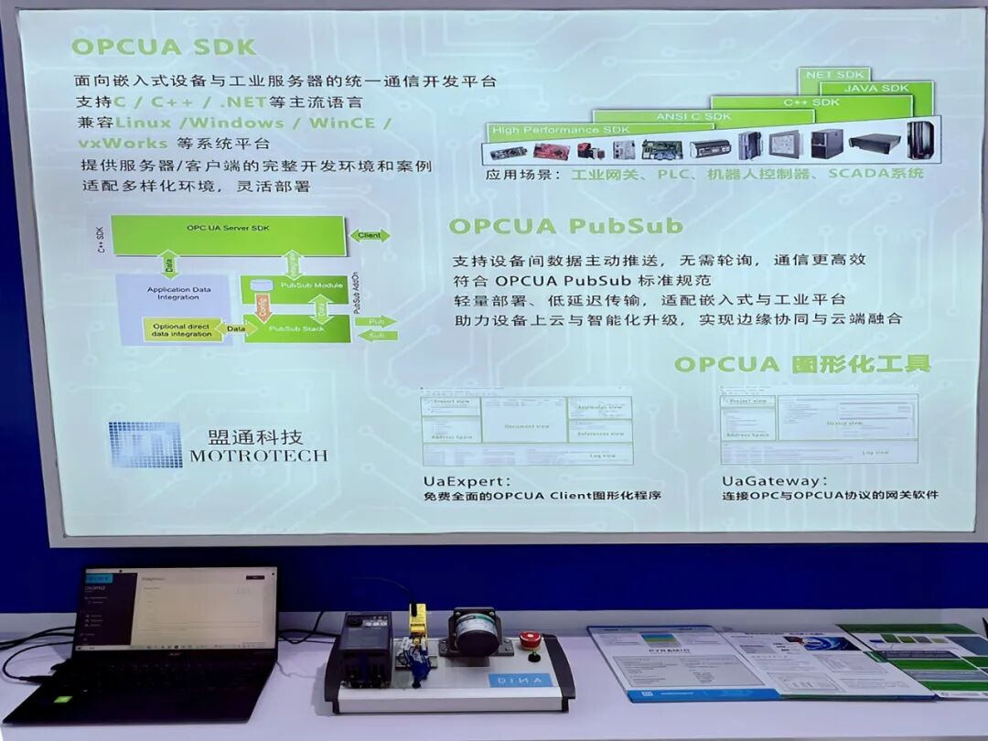 OPC UA协议栈SDK是全球所有⼤型⾃动化企业的共同选择。其SDK支援多种编程语⾔和作业系统,可满足客户从嵌⼊式设备到PC以及Cloud不同资源环境下的开发需求。Unified Automation公司还提供图形化模型⼯具UaModeler和UA设备的UaGateway等全系列软件⼯具。