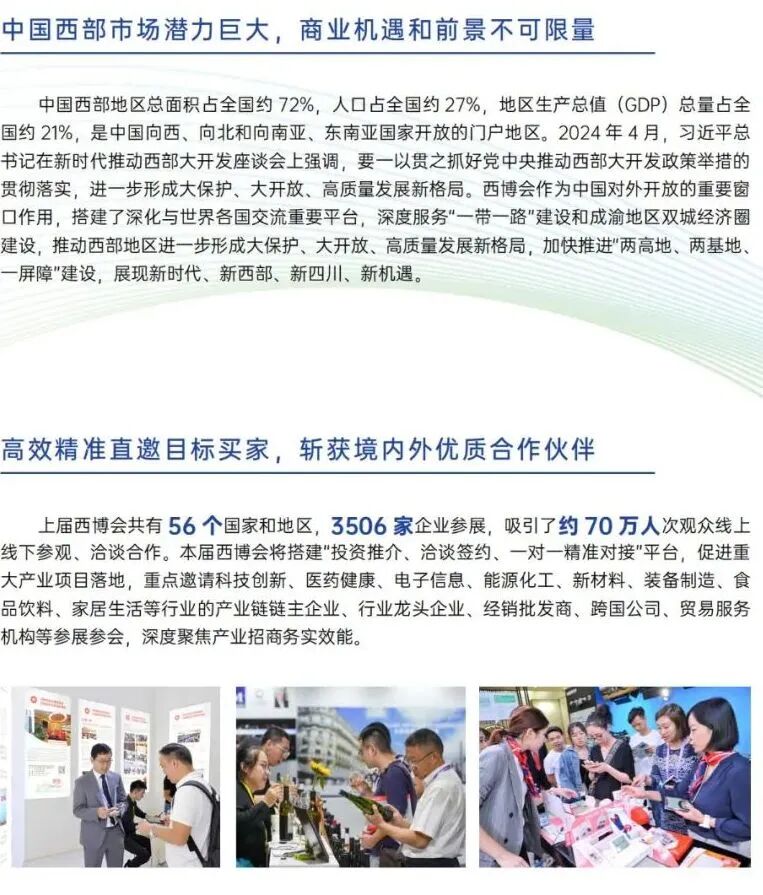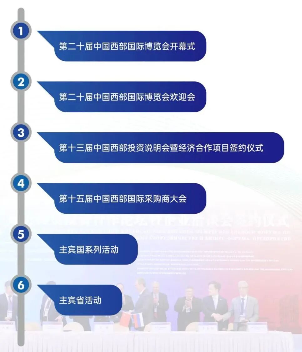 本届西博会将以“深化改革增动能,扩大开放促发展”为主题,以“服务西部大开发”为主线,聚焦服务向西开放主场外交、服务新质生产力发展、服务西部各方合作共赢三大功能,不断提升国际化、市场化、专业化、数字化水平。