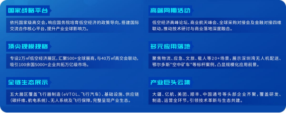 展会是国家培育低空经济新质生产力的重要实践,落地深圳,集政策红利、产业资源与资本关注于一体,是把握中国低空经济脉动的最佳契机。