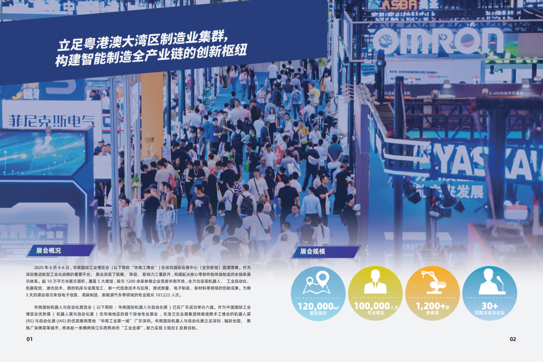 华南国际机器人与自动化展览会 ( 以下简称 : 华南国际机器人与自动化展 ) 已在广东成功举办六届。作为中国国际工业博览会专业展 ( 机器人展与自动化展 ) 在华南地区的首个异地专业展会,东浩兰生会展集团将继续携手工博会的机器人展(RS) 与自动化展 (IAS) 的优质展商落地 “华南工业第一城” 广东深圳。华南国际机器人与自动化展立足深圳 , 辐射全国, 聚焦广深佛莞等城市 , 将串起一条横跨珠江东西两岸的“工业走廊”, 助力实现《规划》发展目标。