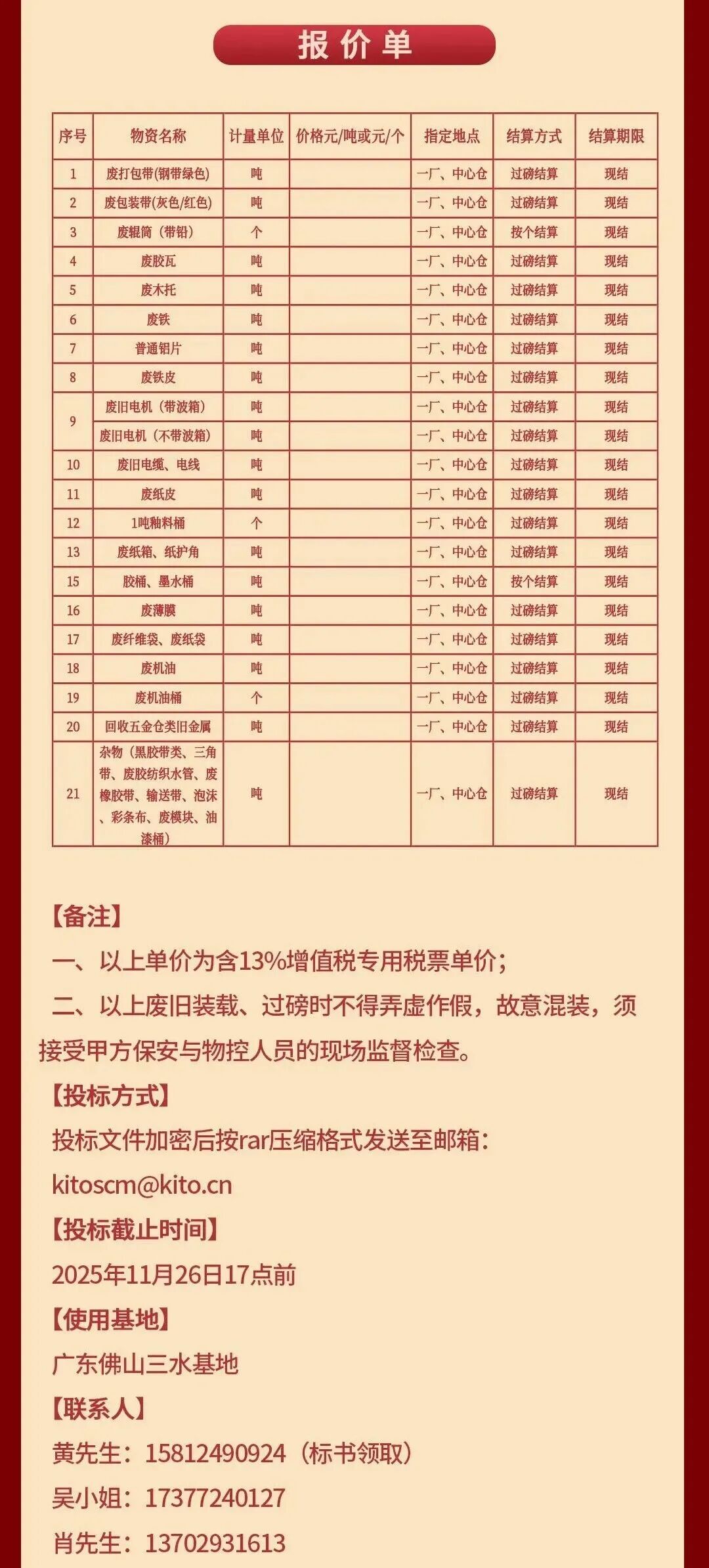 1、金意陶集团废旧物资出售转让年度项目招标