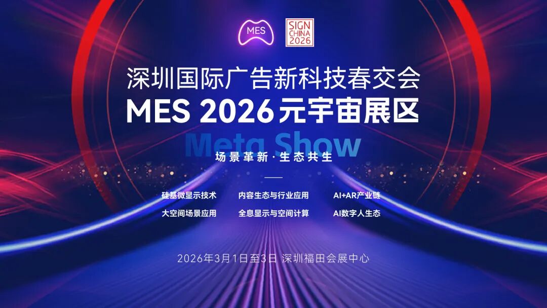 被誉为“全球广告新科技设备一站式奥斯卡盛会”的深圳国际广告新科技春交会,已连续举办16年,每年为超100个国家及地区的海外买家提供挑选最佳解决方案的平台。深圳国际广告新科技春交会下设数字标牌、元宇宙、广告印刷、灯光和音响等板块。MES2026元宇宙展区作为其展示板块之一,增设于2024年,正成为链接前沿技术与市场的重要桥梁,为海内外广告商、渠道商、专家观众及买家展示众多创新产品及方案。