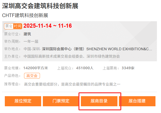 展览面积与展商构成本届展会作为高交会体系中唯一的建筑板块博览会,与第三届广东省建筑文化宣传周联合举办,总展览面积达14.2 万平方米,吸引了3349 家企业参展。参展企业涵盖中建海龙、浪潮智慧建筑、华宝新能等头部企业,以及欧特克、澳大利亚 BuildSource 等国际品牌,展示内容覆盖智能建造、绿色建材、城市更新等全产业链。